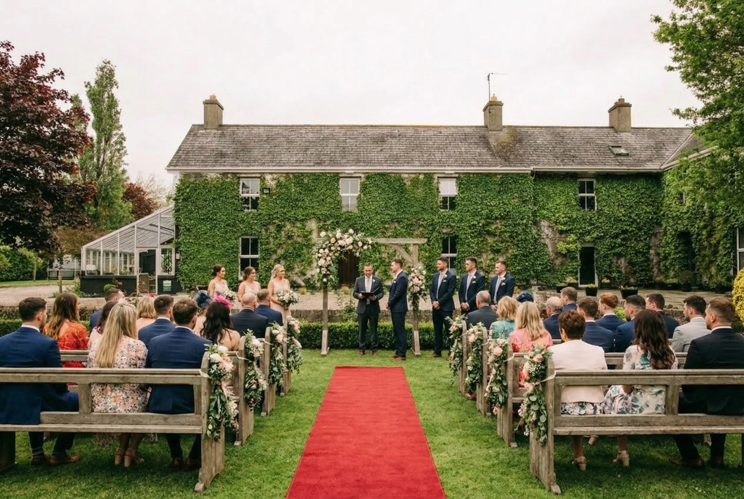 Wing Conservatory: This bright and airy communal space is ideal for quiet moments and small gatherings, comfortably seating 10 to 12 guests. Designed for relaxation and reflection, the Wing Conservatory provides an inviting ambiance, making it the perfect spot to unwind before or after your ceremony. Please note that this space is shared with other guests unless the property is entirely booked out.